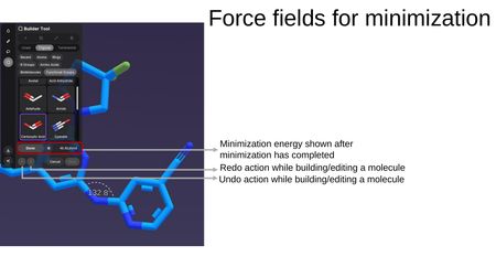 While in the Builder Tool, clicking Minimize runs a force field minimization on the structure. After minimization completes: