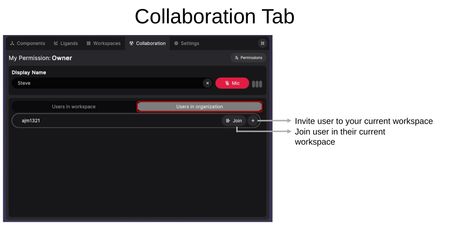 The Collaboration Tab manages users, audio, and permissions within a workspace.