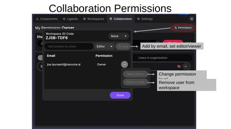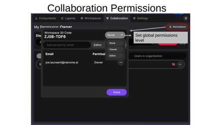 - Global permissions level — Set the workspace to None, Viewer, or Editor for anyone with the code.