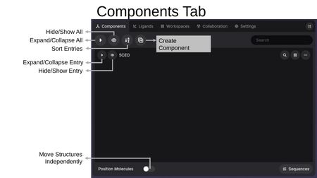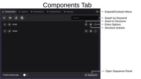 The Components Tab is where you manage all loaded structures and their visual representations.