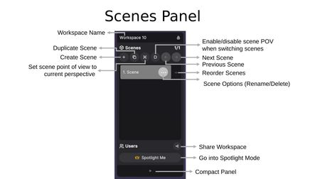 The Scenes Panel is accessible from the left side of the interface and manages scene views within a workspace.