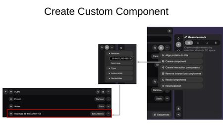 - Create component — Create a custom component by specifying residue ranges, types, amino acids, or nucleotides.